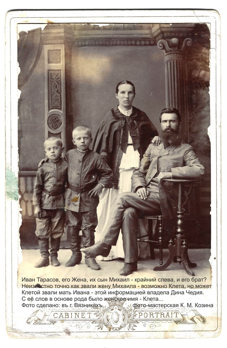 Это - самое старое фото рода Тарасовых. Сделано оно примерно в 1890 году в городе Вязники, Владимирской губернии.