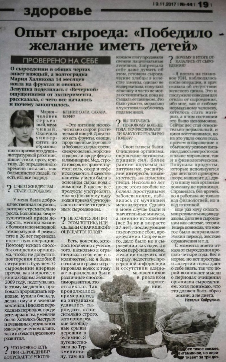 Пересматривала старые материалы, нашла эту публикацию 2017 года с ярким названием о моём опыте 14 месяцев сыроедения