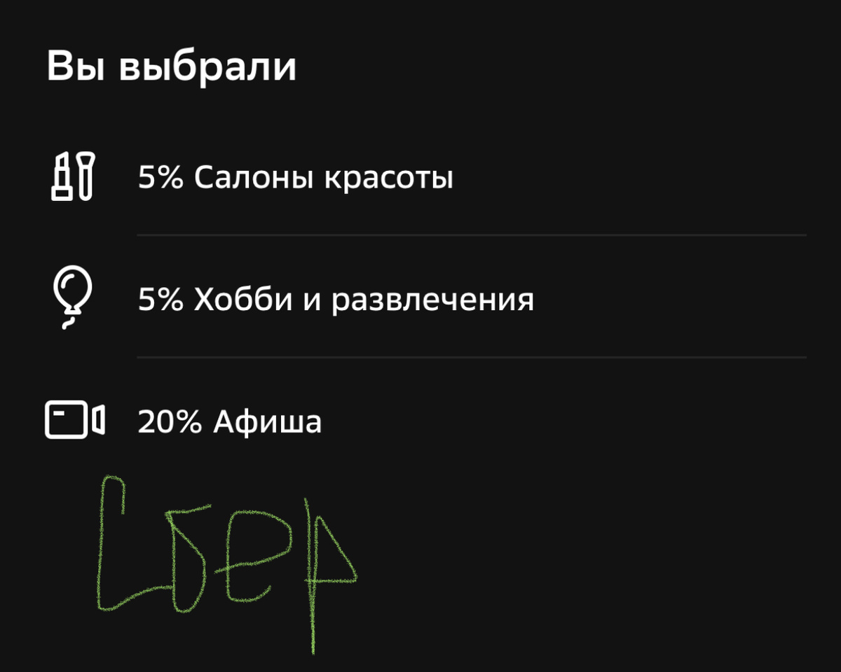 Дождалась 1 числа и категорий Сбера, пишу свою ежемесячную статью по планам на расходы. В этот раз решила сделать обзор на выбранные кешбеки в порядке от самой старой карты к самой новой 😉 Сейчас у меня 7 карт банков и если смотреть по очереди как я их оформляла, получается так: Сбер Т-банк Озон Газпром Альфа ОТП ВТБ В каждой карте есть свои плюсы и если какая-то карта особенно понравится вам после прочтения статьи, буду благодарна за оформление по моей ссылке. За оформление вы и я получите бонусы. Я во многом корректирую планы при виде кешбеков на следующий месяц, потому что мне жаль упускать выгоду. Выгодная категория всегда уходит в приоритет. Например, Сбер дал снова 20% на афишу! Конечно буду искать и выбирать классное мероприятие под этот кешбек. В июне удачно воспользовалась аналогичной акцией, мы сходили на экскурсию в Ленфильм и посетили концерт группы «Чиж и Ко». Такие наши походы описываю подробно и сохраняю в подборку, которая может быть полезной для жителей и гостей
