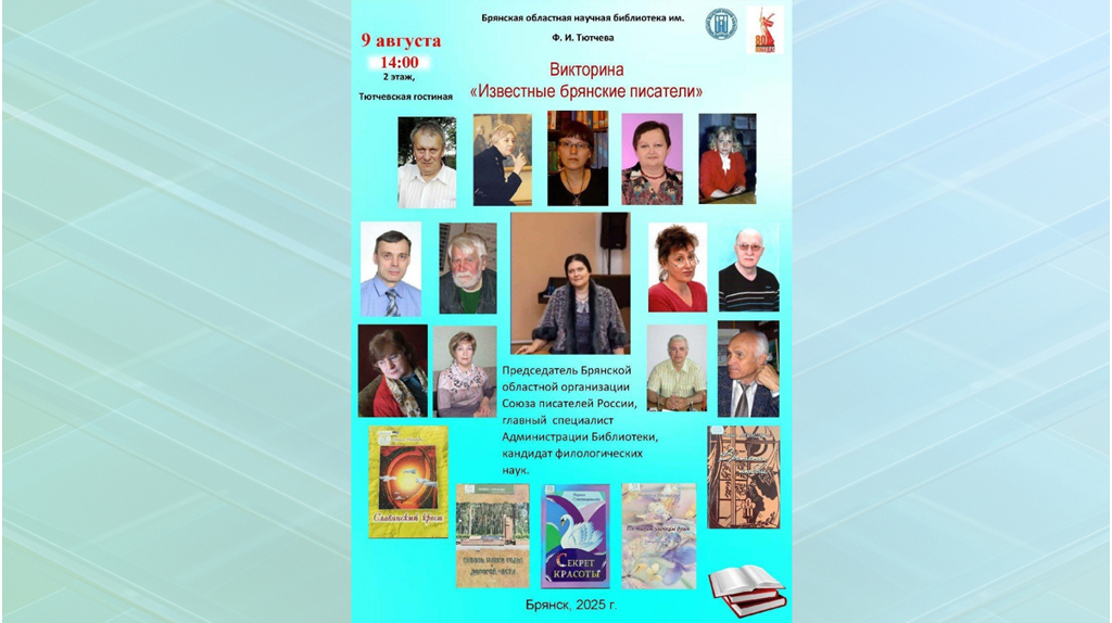 Библиотека им. Тютчева пригласила на викторину «Известные брянские писатели»