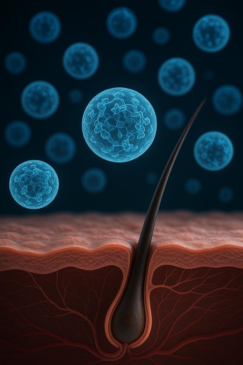 Процедура Экзосом The Hyal EXO Scalp cразу после обработки кожи мезороллером. Через микроскопические отверстия в зоне воздействия мезороллера экзосомы LEUCO-EXO и другие активные компоненты продукта The Hyal EXO Scalp проникают в самое сердце волоса- к волосяному фоликулу и стимулируют его работу, способствуя росту волос. Данная процедура безболезненна и не требует длительной реабилитации.