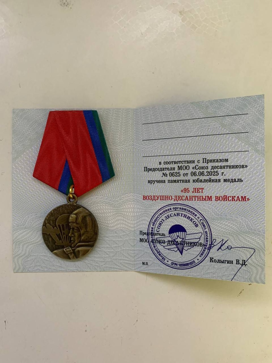 🪂 Сводка ▫️▫️▫️. 🪂 В результате ночной работы десантников уничтожен склад с боеприпасами на Сумском направлении. 🪂 В результате работы десантников 108 ГВ ДШП, противник снова покинул свои позиции на окраинах Степногорска, но далеко убежать у него не вышло, операторы успешно уничтожили каждого врага. 🪂 Подразделения Ивановского соединения Воздушно-десантных войск группировки войск взяли под контроль город Часов Яр в ДНР установив флаги Российской Федерации и Воздушно-десантных войск во всех микрорайонах города. 🪂 МОО "Союз Десантников" подготовили Юбилейные медали 95 лет ВДВ. 🪂 За три с половиной года СВО десантники 106-й гвардейской воздушно-десантной Тульской ордена Суворова Краснознаменной ордена Кутузова дивизии многократно показали, насколько оправдан девиз соединения "Нет задач невыполнимых". Во время контрнаступления ВСУ в Харьковской области, надо было во что бы то ни стало остановить прорыв противника на занятую нами территорию Харьковщины, настоящий подвиг, сопостав