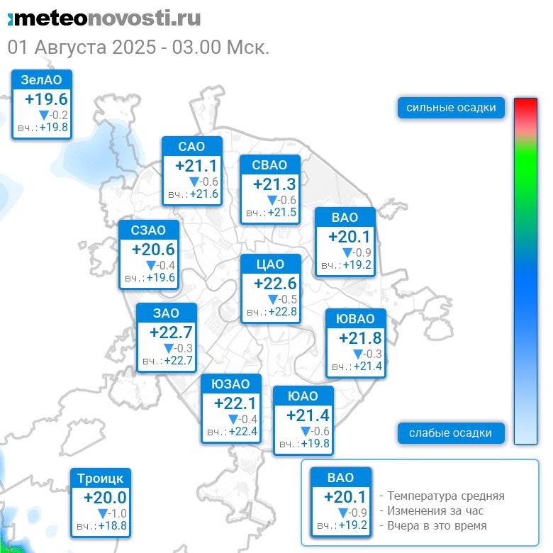 В 3:00 в Москве было от +19°C до +23°C, средняя температура +21.2°C #погода #Москва #лето #температура #1августа #пятница