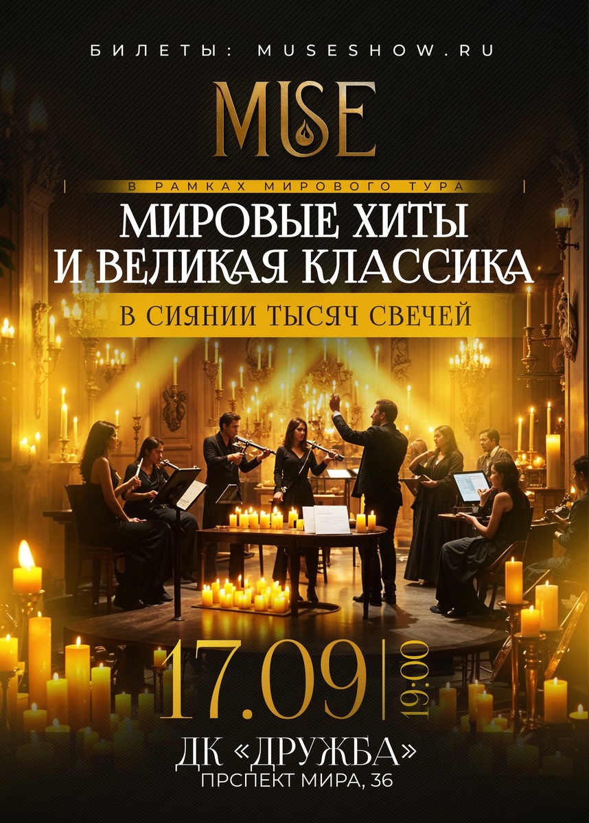 Усть-Илимск, 17 сентября, живой концерт мировых хитов и классики в сиянии тысячи свечей — шоу симфонического оркестра при свечах MUSE
