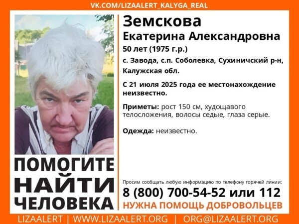 Калужский поисковый отряд «ЛизаАлерт» объявил розыск Екатерины Александровны Земсковой, сообщается в официальной группе отряда в социальной сети «ВКонтакте».