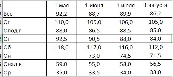 1 августа на календаре, а это значит, что пора делать замеры лентой и анализировать параметры тела на умных весах. Мемасик как раз в тему Умные весы сказали, что мое тело теперь не на 80 лет, а на 76 – за месяц стала здоровее на целых 4 года! Это меня порадовало больше всего! Ну вот реально круто! Триггерил меня этот показатель очень сильно. Мне вообще-то 42, какие 80 могут быть?! 76 – уже лучше. Эти долбанные весы с 40 лет мне показывают возраст тела 80 лет. Статистику я начала вести только с июля поэтому цифр мало, но и по ним видно, что я похудела, в том числе, за счет мышц – их объем уменьшился. А что бы было, если бы не было силовых тренировок?! Это стало неожиданным для меня, если честно, потому что я чувствую, что мышцы в теле появились, а по факту их стало меньше – как так? Сейчас я тренируюсь 2 раза в неделю и организм между тренировками не успевает восстанавливаться – чувствуется усталость во всем теле поэтому 3 тренировки в неделю я пока не рискую вводить…. Это будет килогр
