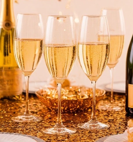 Одной из популярных традиций является открытие бутылки шампанского с особым ритуалом: аккуратно наклоняют бутылку, чтобы пузырьки начали подниматься вверх, произносят тосты за здоровье и успехи. Важным элементом праздника считается украшение бокалов и сервировка стола в стиле роскоши — свечи, цветы, блестящие украшения создают атмосферу праздника.