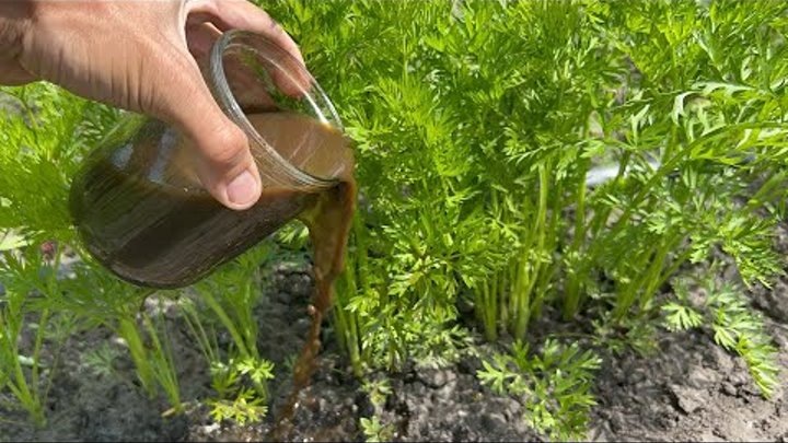 Используя этот рецепт, вы сможете обеспечить морковь необходимыми ей питательными веществами. Корнеплоды наберут недостающую массу, вырастут крупными, крепкими, сладкими, ровными и будут дольше храниться.