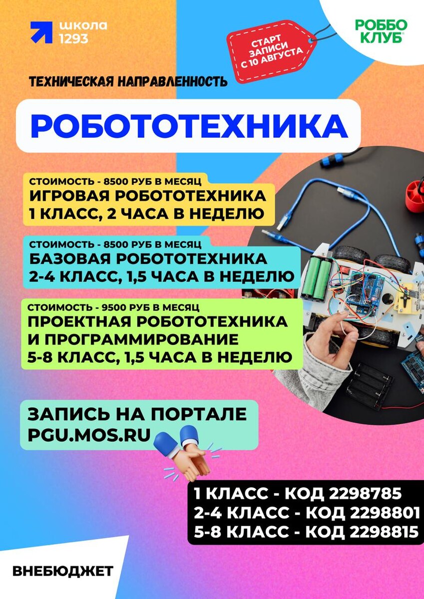 РОББО Клуб — учим детей будущему! 🚀 РОББО — это образовательная платформа, где дети и подростки осваивают инжиниринг и программирование через робототехнику. 🔧 Что изучаем? - Программирование - 3D-моделирование - Сборку роботов - Схемотехнику 📚 Программы для разных возрастов: 1 класс: Игровая робототехника (6-7 лет) — алгоритмы, управление роботами, 3D-моделирование. 2-4 класс: Базовая робототехника — программирование, датчики, проекты "Умный дом" и "Катапульта". 5-6 класс: Проектная робототехника — Arduino, сложные алгоритмы, участие в олимпиадах. 7-8 класс: Продвинутая робототехника — разработка приложений, схемотехника, конкурсные проекты. 💡 Почему РОББО? ✅ Практические навыки ✅ Подготовка к олимпиадам ✅ Современное оборудование (РОББО платформы, 3D-ручки, Arduino) 📍Запись с 10 августа. #ДОНМ | #ШколыКолледжиМосквы | #Школа1293 | #ЗАО | #ШколаКунцево | #РайонКунцево #РОББО #Робототехника