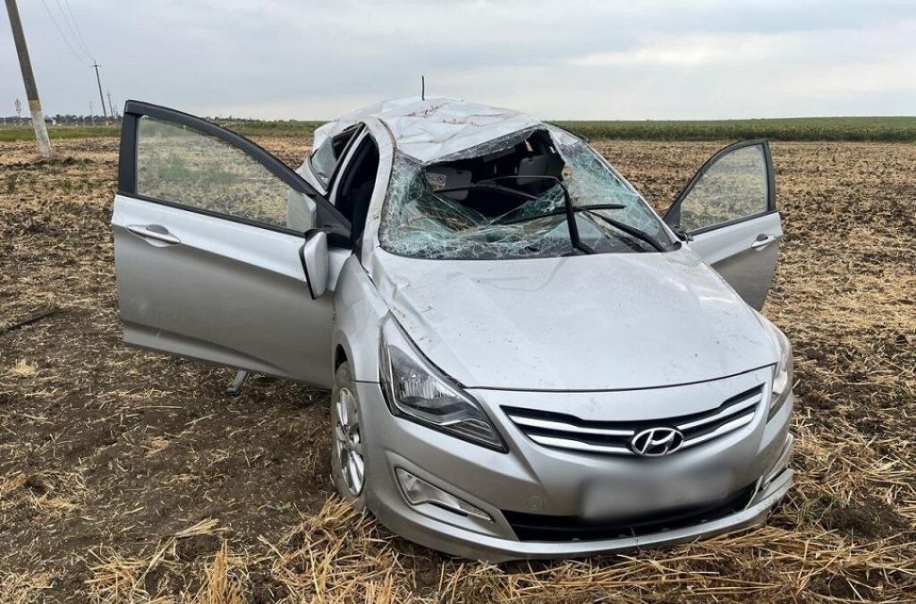 Автомобиль с женщиной и ребенком перевернулся на трассе под Белореченском