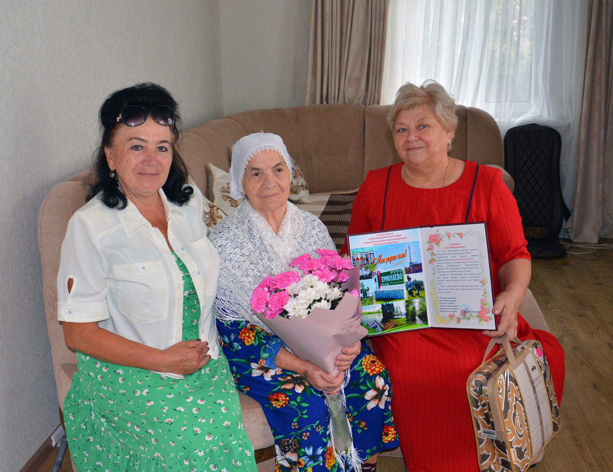 Визит представителей местной власти - событие особое для юбиляра. Савие Файзрахмановне и её дочери Риме Шамиловне было приятно встретить у себя в гостях Марину Владимировну Букрееву, главу Ермолаевского сельского поселения. В эти дни свое 90-летие отметила Савия Файзрахмановна Мухаметшина из села Ермолаево. С главой СП Ермолаевский сельсовет Мариной Букреевой едем поздравлять юбиляршу. Савия Файзрахмановна ждала нас в доме своей дочери Римы Мустафиной, которая много лет проработала учителем в первой школе. - Как хорошо: мама живет с дочкой, - отмечаю я при встрече. - Она не постоянно у меня, поживет недельку, другую и просит ее домой отвезти, скучает по родному месту, - говорит Рима Шамиловна. - У меня там кошка одна, - вступает в разговор Савия Файзрахмановна. – Не могу ее надолго оставить. Да и дом жалко бросать. Там место хорошее, спокойное. В этих словах чувствуется ответственность за других, с которыми прожила наша юбилярша всю жизнь. Вместе с мужем Шамилем Гаязовичем они подняли