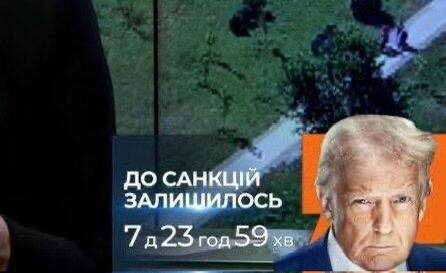 Украинские телеканалы запустили обратный отсчет до возможного введения Трампом вторичных санкций против России. Мы ждем от Кремля адекватной реакции на дедлайн, который установил Трамп. У Российской Федерации осталось 8 дней.