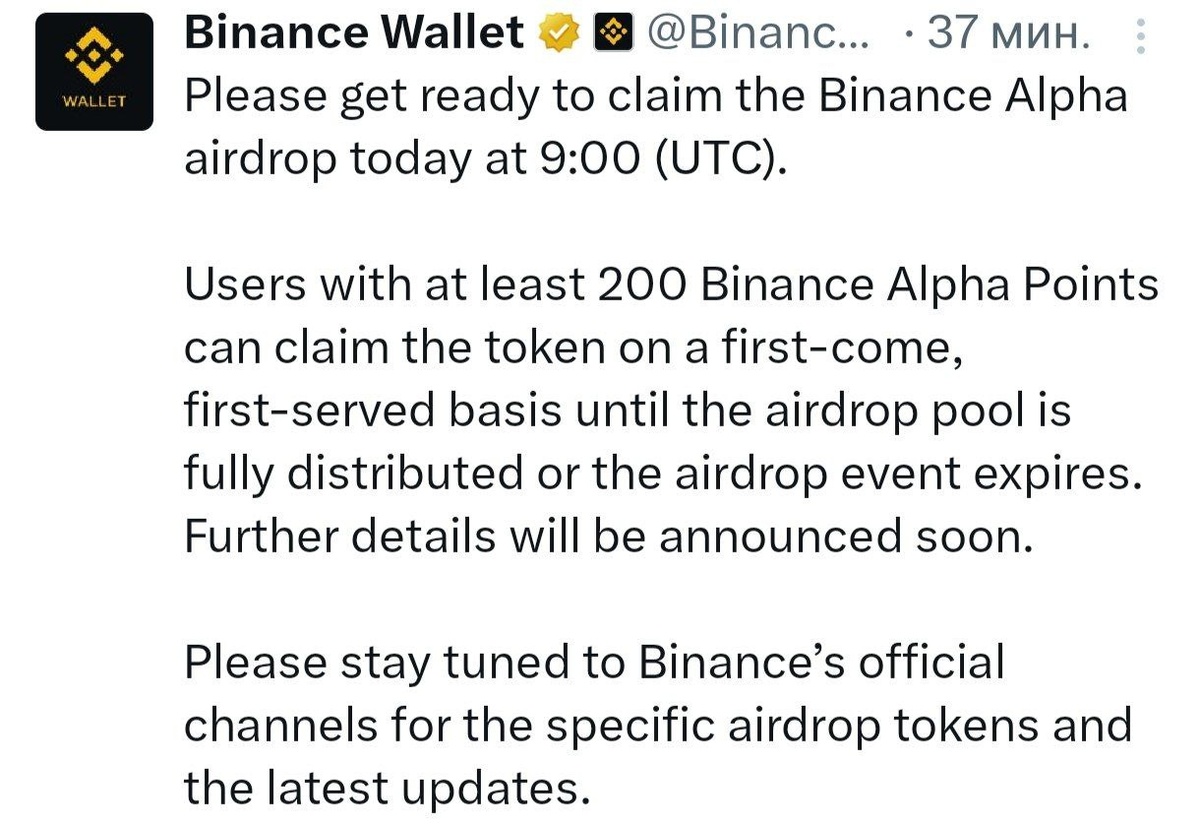 Еще один неизвестный дроп от Binance в 12:00 по Киеву. Если клеймили прошлый, тогда имеет смысл забрать и этот.