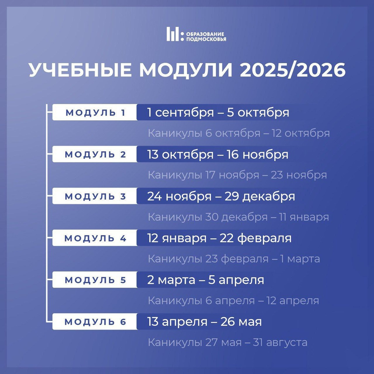 Учебный год стартует традиционно — 1 сентября. Завершатся занятия 26 мая 2026 года.