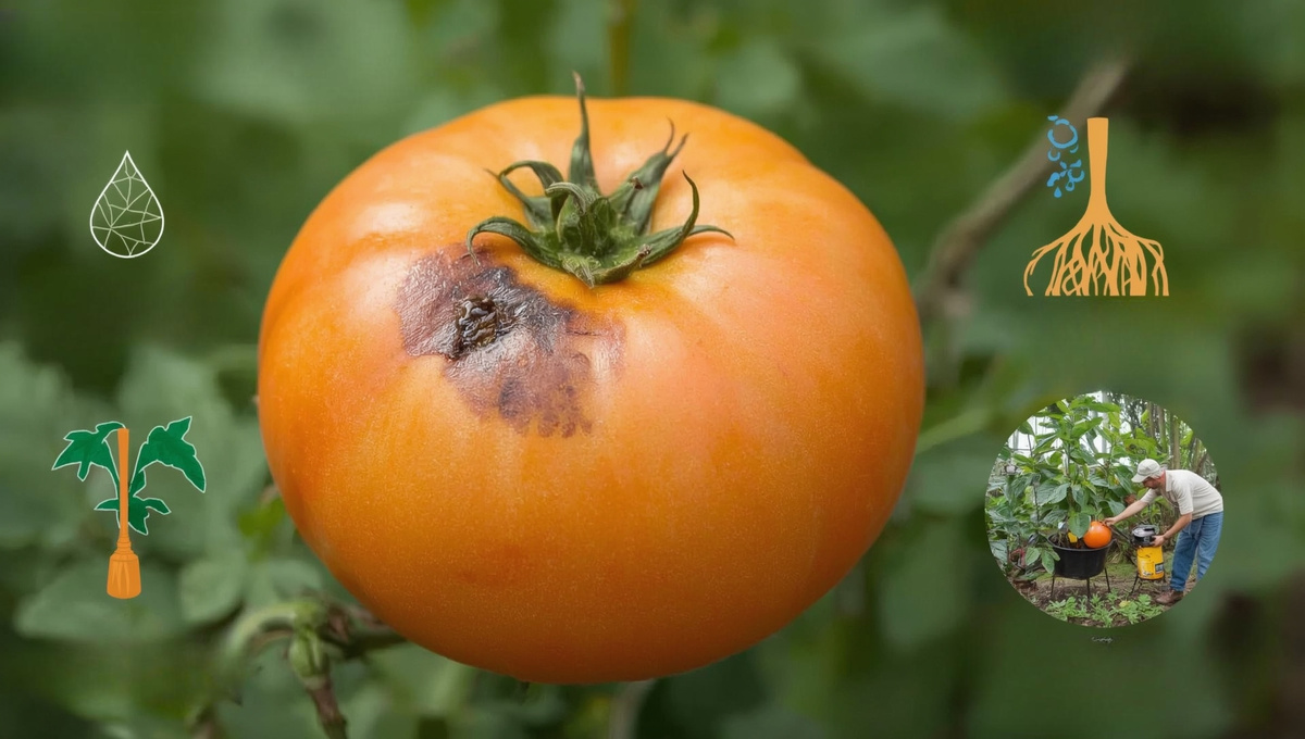 Черные вдавленные пятна размером с монету на кончиках томатов — вершинная гниль. Не путай с фитофторой (там бурые пятна с белым налетом на листьях).