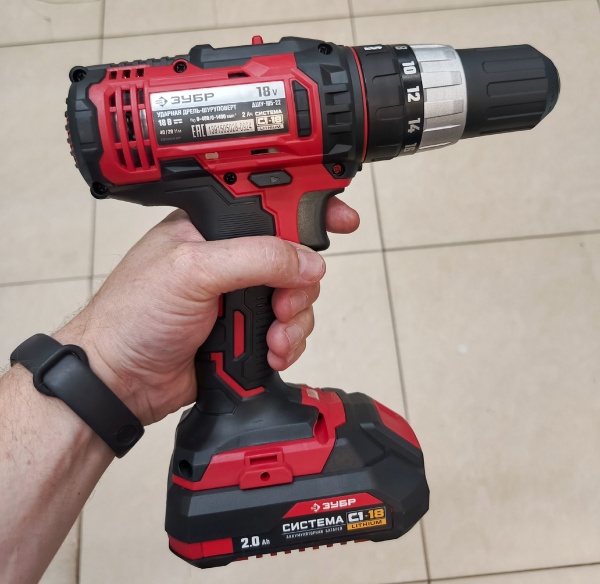 У меня давно нет ударной дрели, есть лишь перфоратор и аккумуляторная ударная дрель. Почему это так? Дело в том, что по мощности – как сверления, так и удара, аккумуляторные ударные шуруповерты давно обогнали собратьев с питанием от розетки. А без шнура работать в разы легче, особенно на высоте. Для серьёзных задач у меня есть перфоратор BOSCH, а для всего остального – мощный аккумуляторный шуруповерт. Какой из аккумуляторных шуруповертов с ударом на рынке сейчас оптимальные? Приведу одну модель для примера, которая мне очень нравится. Дрель ДШУ-185 – отличное соотношение цены и качества для дома и работы. В чём она так хороша? Перечислим краткие сведения: - крутящий момент до 40 ньютон-метров; - два аккумулятора 18 Вольт на 2 амперчаса; - время заряда аккумулятора – 1 час; - максимальный диаметр сверла – 13 мм. Эта дрель позволяет работать в трех режимах – шуруповерта, дрели и ударной дрели, то есть её можно применять буквально везде – для сборки мебели, сверления дерева, сверления