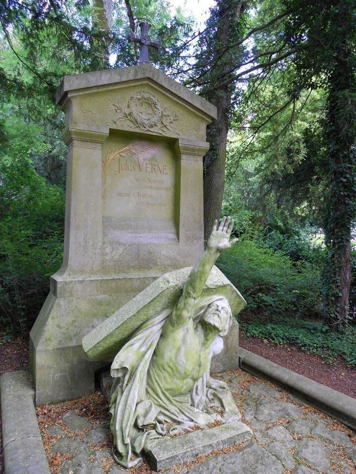 Жюль Верн скончался 24 марта 1905 года в возрасте 77 лет от осложнений, вызванных хроническим диабетом и последствиями инсульта. Через два года после его смерти, в 1907 году, на могиле был установлен уникальный памятник. Скульптурная композиция была создана известным скульптором Альбертом Розе. Для максимальной точности в передаче черт лица писателя скульптор использовал настоящую посмертную маску Жюля Верна. Памятник получил название «К бессмертию и вечной юности» (Vers l’Immortalité et l’Eternelle Jeunesse). Скульптура изображает писателя, который словно вырывается из своей могилы и устремляется к небу. Этот образ символизирует: - Бессмертие творческого наследия писателя - Вечную молодость его произведений - Стремление к новым открытиям и горизонтам Надгробие стало настоящей достопримечательностью Амьена и местом паломничества поклонников творчества Жюля Верна. Его изображение настолько узнаваемо, что использовалось в качестве логотипа в журнале классической научной фантастики «Amazi