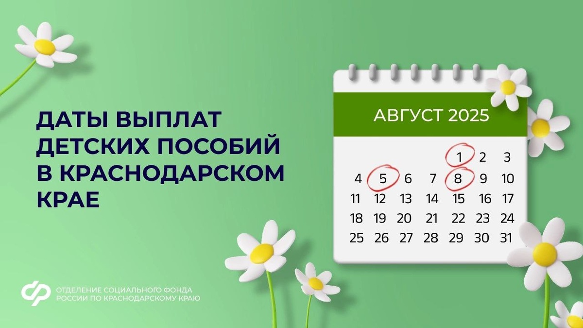 📆 Даты выплат детских пособий в Краснодарском крае в августе