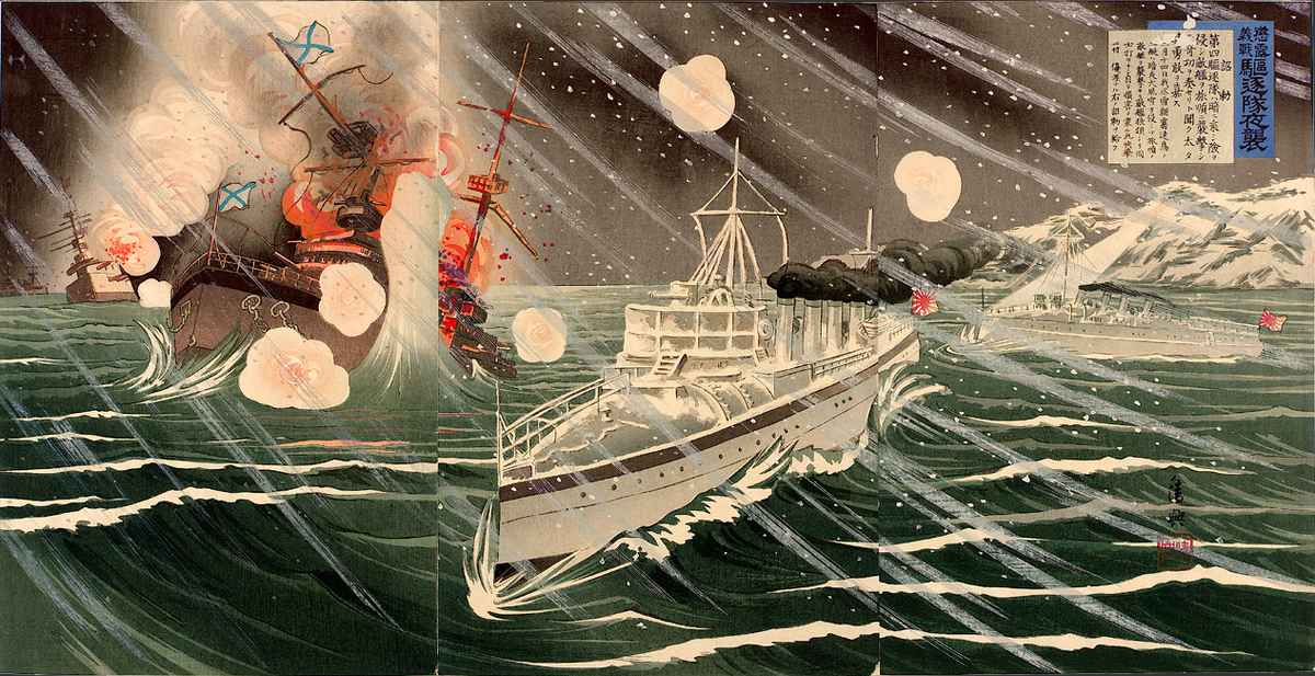 Здесь у рисованной пропаганды Империи Ямато было обширное поле для деятельности, тем более, что победы японского флота в войне были эффектны и многочисленны, Российский же императорский флот фактически мог противопоставить им только последнее утешение побежденных: массовый героизм личного состава... Ну и уничтожение двух японских броненосцев на минах под Порт-Артуром 2 мая 1904 г. - эпизод, о котором, к сожалению, историки Русско-японской войны, как правило, упоминают вскользь.