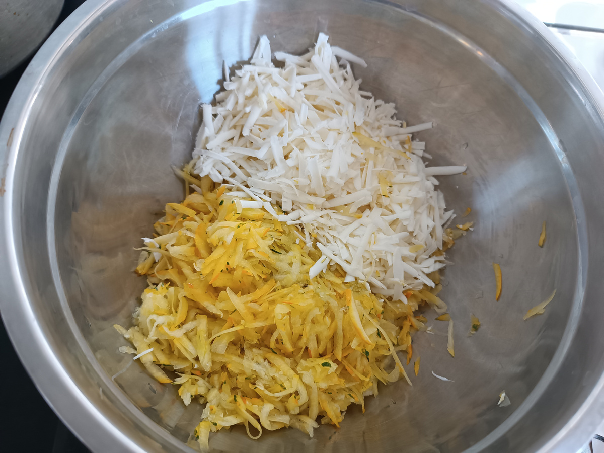 Здравствуйте, дорогие друзья! Сегодня предлагаю вашему вниманию вкусные и полезные "Оладьи из кабачков с сыром". Готовить их несложно, а результат порадует Вас и ваших близких. Нам понадобятся: Кабачок - 1 шт. среднего размера, Сыр (сулугуни или брынза) - 150 гр., Яйца - 2 шт., Зелень - укроп, петрушка, зелёный лук, Чеснок - 1-2 зубчика, Соль и сода на кончике ножа, Мука до получения теста консистенции густой сметаны. Если кабачок молодой, то очищать от кожуры и семян не нужно. И соль используем очень аккуратно, в зависимости от солёности сыра. Кабачок и сыр натираем на крупной терке, добавляем измельчённые зелень и чеснок, яйца, соль и соду. Хорошо перемешиваем и понемногу добавляем просеянную муку до получения нужной консистенции теста. Жарим на разогретом растительном масле на небольшом огне до румяной корочки. В это время сделаем соус: Измельчаем зубчик чеснока и зелень, солим, перчим и смешиваем с 3-4 ст. л. сметаны или йогурта. Всё соус готов. Готовые оладьи сразу