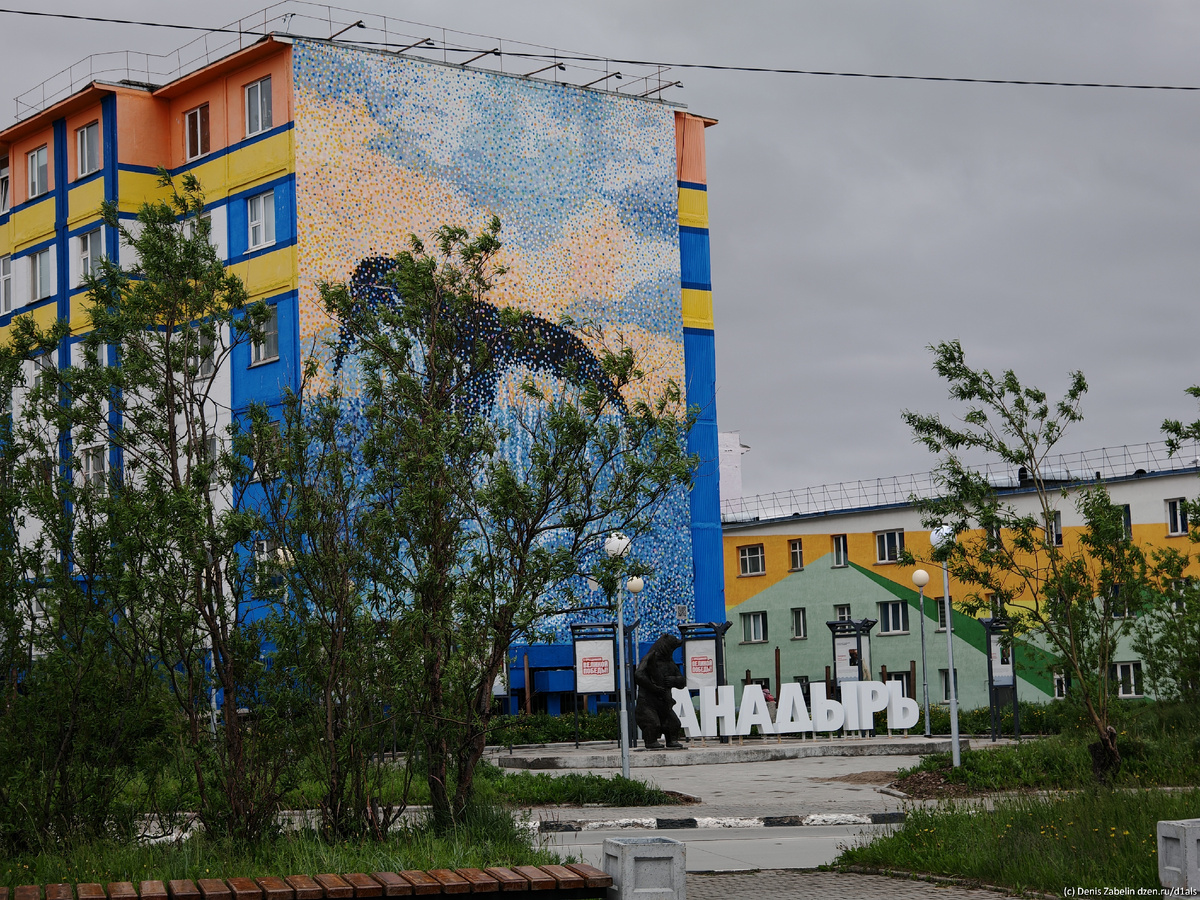 Попадая в Анадырь, ожидаешь увидеть серые, унылые кварталы. Но реальность поражает! Это, пожалуй, самый яркий город России. Практически каждый дом здесь украшен огромными муралами – картинами во всю стену.