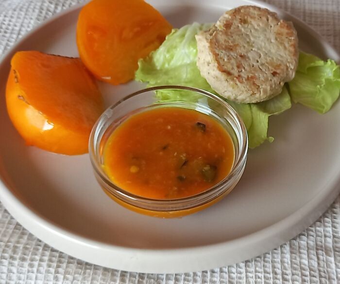Вкусный очень, чуть более сладковатый (или менее кисловатый), чем из обычных красных томатов, как мне кажется. Но, в целом, кроме цвета, в нем ничего необычного нет. Помидоры есть помидоры, за что мы их и любим Чтобы соус получился оранжевым преоранжевым, кроме оранжевых помидор, нужны еще оранжевый сладкий перец и оранжевый/красный острый перец.