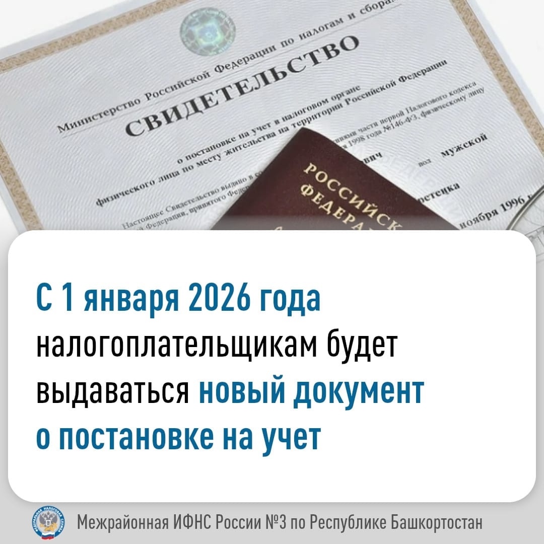 С 1 января 2026 года налогоплательщикам будет выдаваться новый документ
