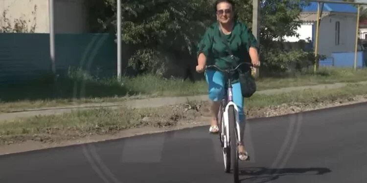 70-летняя велосипедистка оценила новую дорогу в Костанайской области
