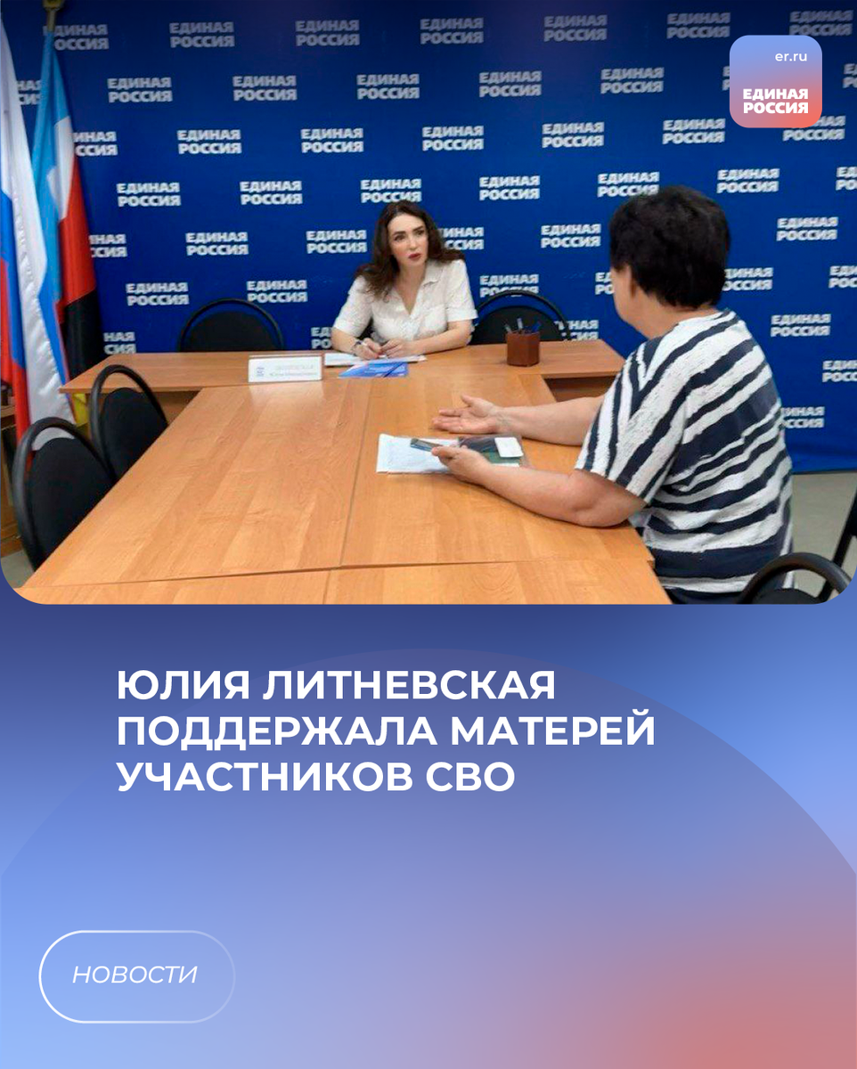 ✅Депутат Саратовской областной Думы встретилась с членами семей военнослужащих в Энгельсском местном отделении партии «Единая Россия». К Литневской обратились мамы участников СВО, которые погибли и пропали без вести. Литневская поддержала женщин и оказала им материальную помощь. Все обратившиеся получили консультации. 💬«Ко мне обратился военнослужащий с просьбой о помощи в госпитализации его мамы, перенесшей онкологию. Оказала содействие бойцу в этом вопросе», – сообщила Юлия Литневская.