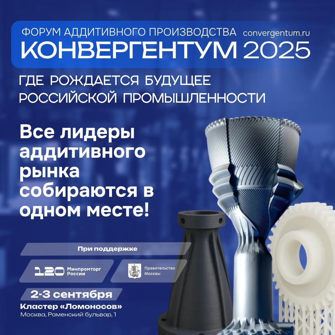 «Конвергентум 2025»: рекордный старт и ваш стратегический выбор 👤 Уже сейчас: 🔥 50+ ведущих экспертов-спикеров 🔥 700+ зарегистрированных гостей 🔥 80% стендов распродано 🚀Российская промышленность сделала выбор: аддитивные технологии стали драйвером трансформации. «Конвергентум» — не просто форум, а эпицентр перелома, где решается, кто войдёт в новую эру производства. Кем вы станете через 1 месяц? ➕Благодарным зрителем? Услышите от лидеров, стартапов, экспертов, топов отраслей и органов власти то, что перевернёт ваше видение заводов будущего. ➕Экспертом? Раскроете природу технологий 3D-печати на секциях форума? Вы готовы к тому, чтобы отечественный рынок встрепенулся и вдохновился вашими успехами и визионерством? Готовы задать тренды? ➕Экспонентом? Последние 20% стендов — ваш шанс для нетворкинга с 700+ инноваторами, готовыми к коллаборациям здесь и сейчас. 80% участников — промышленные предприятия, внедряющие аддитивные решения. Ключевые партнёры: Минпромторг России и Правите