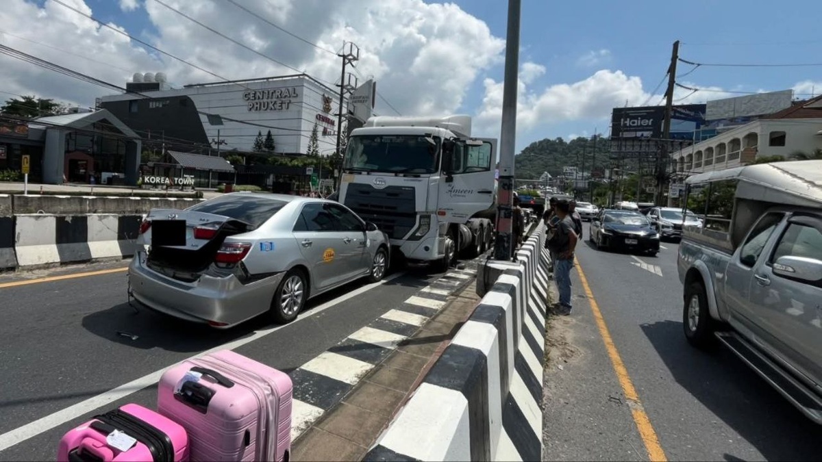 По неустановленной причине тягач с полуприцепом-цистерной протаранил двигавшиеся перед ним автомобили на выезде из тоннеля в сторону Чалонга. Среди поврежденных транспортных средств оказалась и машина такси, причем последнюю от удара развернуло, так что фура повредила ей и заднюю, и переднюю часть кузова.
