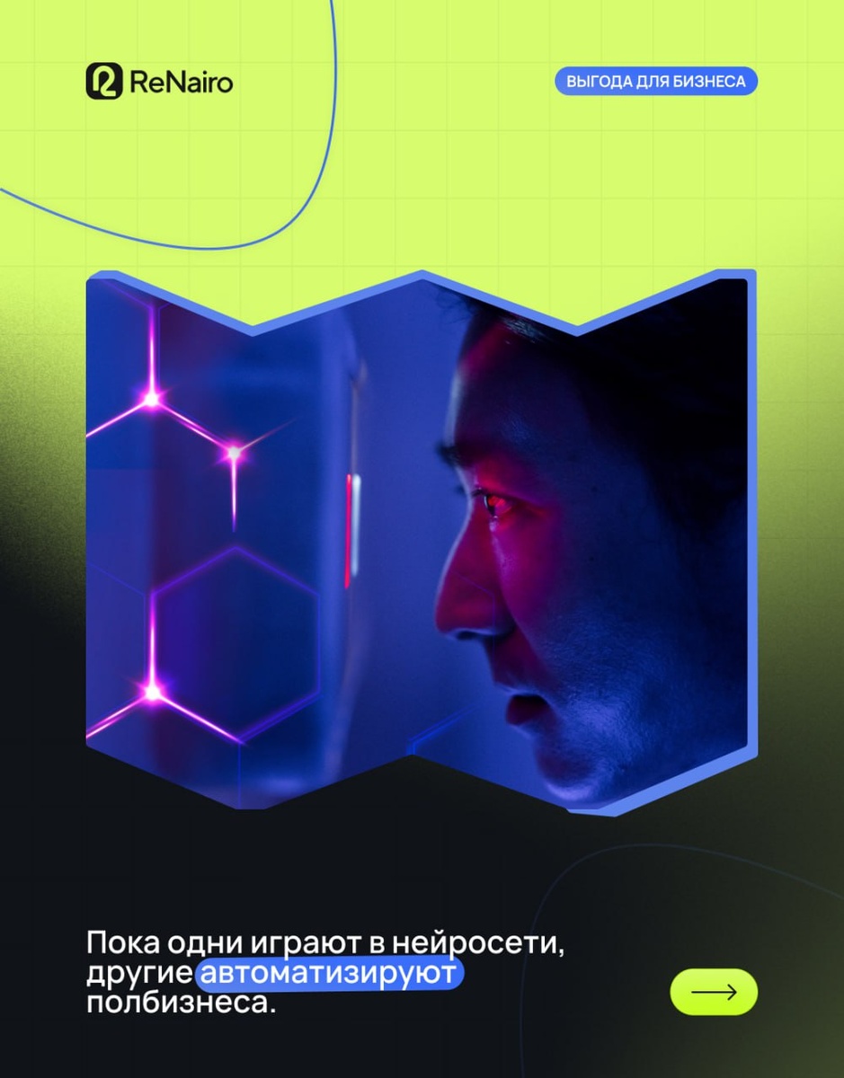↗️ Пока одни играют в нейросети, другие автоматизируют полбизнеса. 🐳 Кто-то до сих пор тратит часы на ерунду — вроде накрутки лайков, написания одинаковых сообщений или проверок данных вручную. А кто-то внедряет ИИ, который автоматизирует продажи и маркетинг, улучшает контроль качества и снижает расходы. Тех, кто не успевает внедрить ИИ, ждёт одно: остаться позади. 💼 Искусственный интеллект — это не тренд, это стандарт, с которым нельзя отставать. Оставайтесь с нами, чтобы узнать, как внедрить ИИ в свой бизнес. А вы на каком уровне? 🔥 — Уже на ИИ — даём жару! 💚 — Ещё думаем, но с каждым днём всё ближе к решению. 👾 — Всё ещё зависим от старых методов. ReNairo