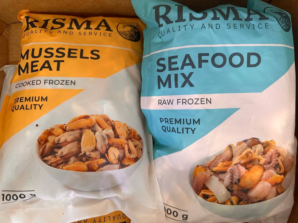 Мясо мидий без раковины. Фасовка по 1 кг - 750 р/кг Морской коктейль. Фасовка по 1 кг - 630 р/кг Фирма Risma. Зарекомендовала себя качественным товаром!
