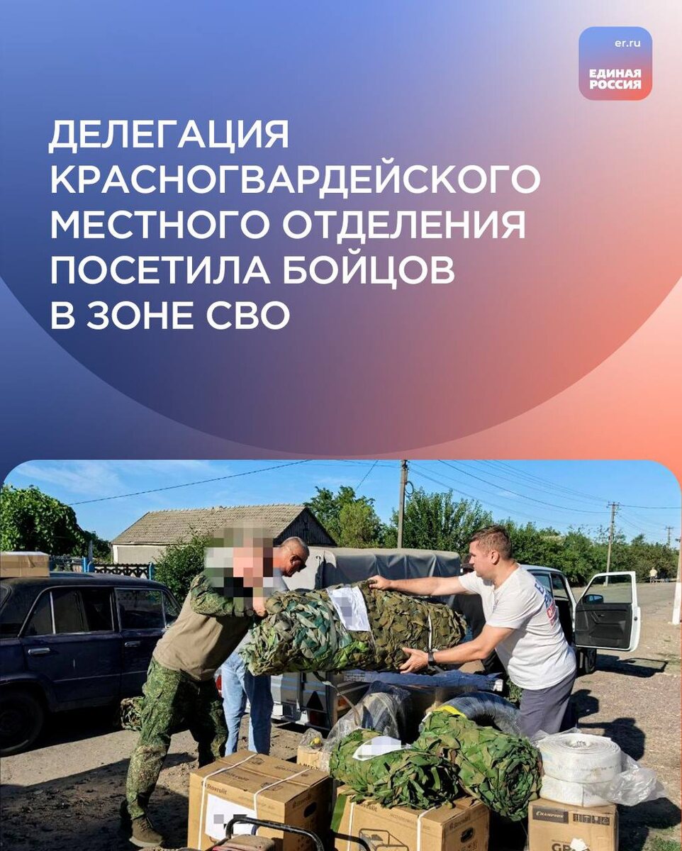 Секретарь Красногвардейского МО партии «Единая Россия», глава муниципалитета Константин Ишков и председатель Совета депутатов Красногвардейского округа Сергей Черников совершили рабочую поездку в зону СВО на Херсонском направлении. В рамках визита военнослужащим был передан гуманитарный груз, включающий технические средства, строительные материалы, медикаменты, предметы личной гигиены и продукты питания. Общая стоимость поставки составила более 790 тысяч рублей. Средства были выделены с районного благотворительного счёта. Кроме того, жители населённых пунктов муниципалитета передали маскировочные сети, военнослужащим также были переданы индивидуальные посылки от родственников. Военнослужащие выразили благодарность жителям округа за постоянную помощь и подчеркнули, что такая поддержка укрепляет их решимость в выполнении задач. Работа по оказанию помощи участникам СВО будет продолжена. #единаяроссия #своихнебросаем #ЕР26 #ZаМир