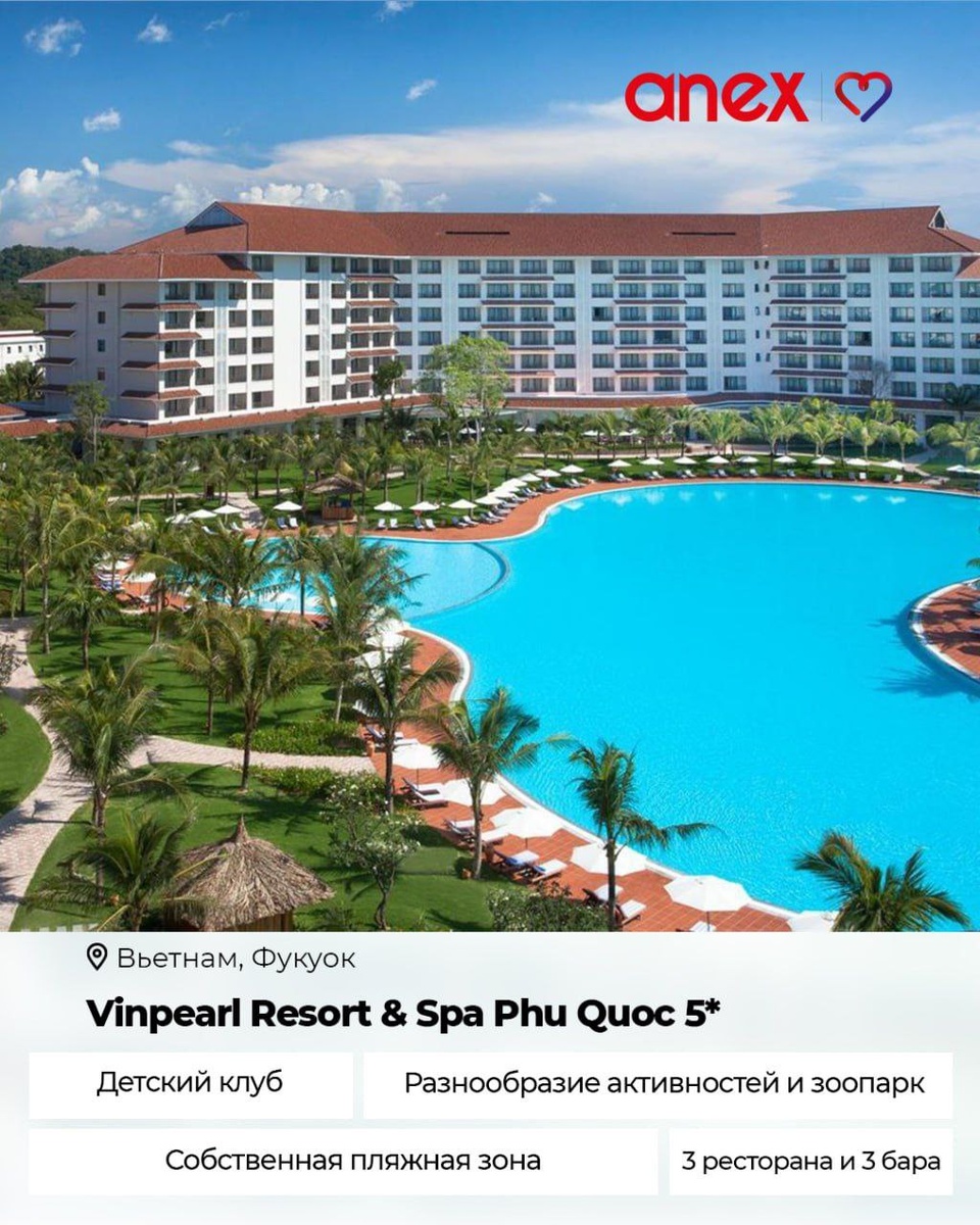 ⚡️Курортный спа-отель с архитектурой в индокитайском стиле. ⚡️Расположен в северной части острова Фукуок, в 30 минутах езды от аэропорта, на пляже Bai Dai. ⚡️В отеле к услугам гостей открытый бассейн, частный пляж, современные номера. ⚡️Для комфортного отпуска. ✈️ из Москвы → Вьетнам, Фукуок 📅 12.12 на 🌙 9+1 ночей 🌴 Vinpearl Resort & Spa Phu Quoc 5* 🛌 deluxe room (without park land and safari access), 2 взрослых 🍽 BB - Только завтрак 🔥 329 329 RUB ✈️ из Москвы → Вьетнам, Фукуок 📅 02.03 на 🌙 9+1 ночей 🌴 Vinpearl Resort & Spa Phu Quoc 5* 🛌 deluxe room (without park land and safari access), 2 взрослых 🍽 BB - Только завтрак 🔥 302 213 RUB ❤️ работаем онлайн со всеми городами.