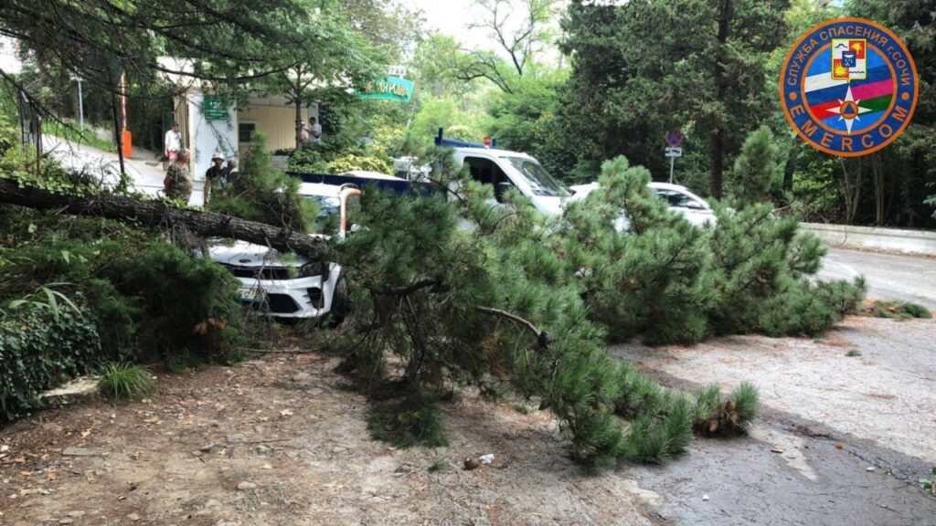 Дерево рухнуло на автомобиль и перекрыло дорогу в Сочи
