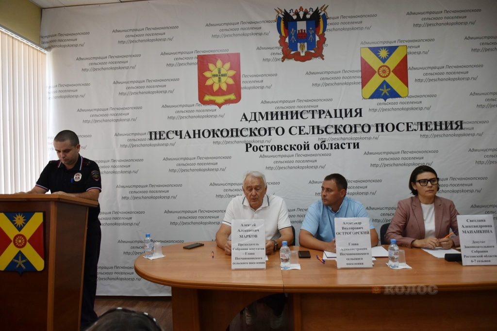На минувшей неделе состоялся отчет главы администрации Песчанокопского сельского поселения А. Острогорского о результатах проделанной работы за первое полугодие 2025 года. В работе собрания приняли участие депутат Законодательного Собрания Ростовской области С. Мананкина, председатель Собрания депутатов — глава Песчанокопского сельского поселения А. Марков, руководители организаций, представители ведомств и жители села. Участковый уполномоченный полиции ОМВД России по Песчанокопскому району лейтенант полиции Е. Алисов рассказал об оперативной обстановке в поселении, отметил, что немало обращений поступает от жертв телефонного мошенничества и напомнил о правилах безопасности. Начальник 70-й пожарной части ФКГУ по Ростовской области А. Потапов рассказал собравшимся о непростой пожарной обстановке, о том, что число возгораний растет по причине человеческой беспечности и безответственности и напомнил об увеличении штрафов за разведение огня в особый противопожарный период. А. Острогорский
