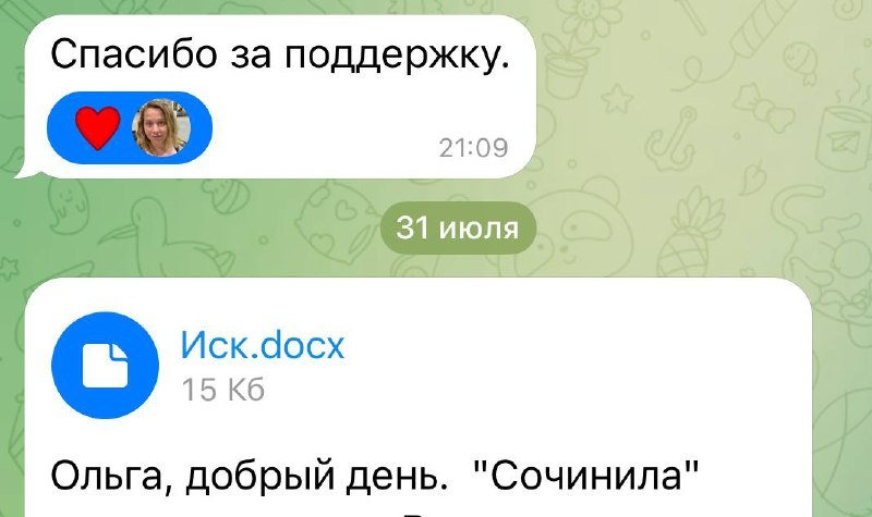 Вот такие тёплые слова и документы я получаю каждый день. Девушки сами составляют заявления по моим шаблонам, я проверяю, даю обратную связь и помогаю довести всё до результата — спокойно, грамотно, без суеты.