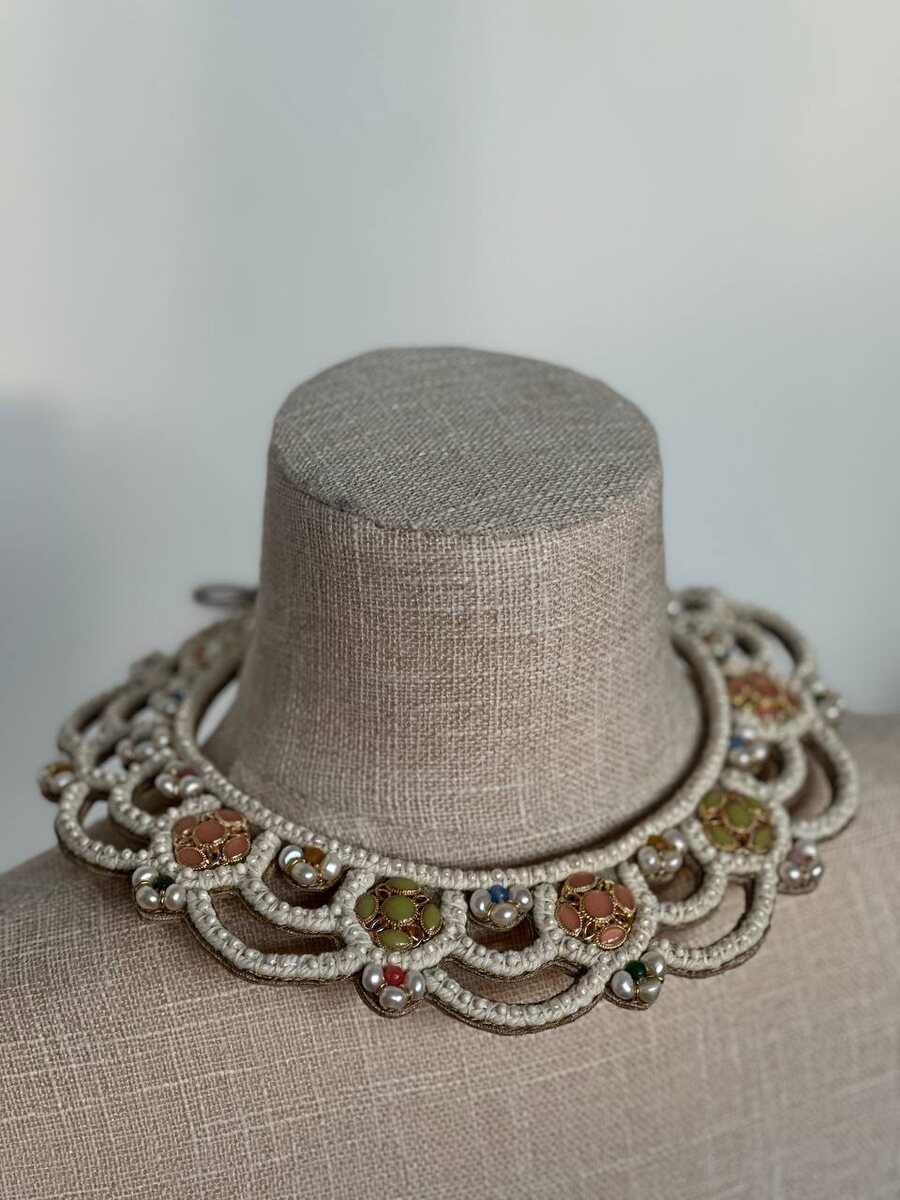 Прорезное ожерелье. Если бы я давала изделиям имена, то это было бы «Княжеским». Сделано по мотивам Нижегородского Прорезного, но деликатнее, как точеная талия молодой княгини. А колорит - ну прелесть, нежные оттенки зеленого и розового, в оправе из крупного и мелкого пресноводного жемчуга. На изнанке золотистая натуральная кожа - легко ухаживать и приятно к телу. Износостойкость минимум лет 300) Та самая семейная реликвия, которую хочется передавать по наследству. И можно носить) ПРОДАНО Возможно изготовление на заказ с похожими элементами: 56 000₽ По вопросам заказа пишите в сообщения группы или лично мне: @alinachistyakovaemb
