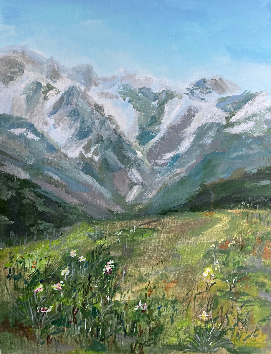 Кавказские горы — самые высокие горы в Европе. Наивысшая точка — гора Эльбрус (5642 метра). Есть еще 7 пятитысячников. Северный Кавказ – это неповторимое сочетание красоты природы, исторических памятников, минеральных источников, разнообразных традиций, смешение языков и народов. В 1942 г происходила великая Битва за Кавказ (25 июля 1942 — 9 октября 1943) — сражение вооружённых сил нацистской Германии, Румынии и Словакии против СССР во время Великой Отечественной войны за контроль над Кавказом. Кавказ. Акрил, холст, 35х45см, 2023 г. 6000₽ Художник: Зоя Ендовицкая картина является частью коллекции «Горы и вершины», часть коллекции можете посмотреть ниже: Вершина близко. Акрил, холст.35х45 см,
