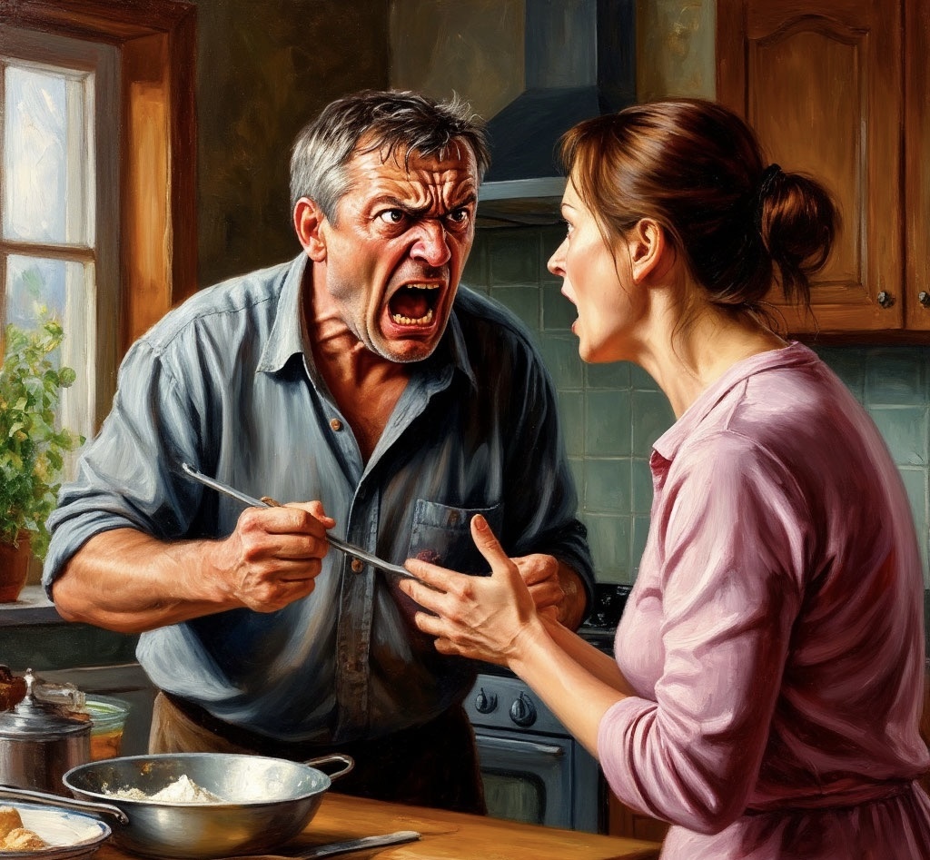 Возможно, вы скажете, что все пары ссорятся? Вероятно. Но далеко не каждый бросает в свою супругу… использованную алюминиевую поварешку. Не каждый кидает предмет лишь с одной целью: напугать, вернуть на "своё место", в последний раз продемонстрировать своё превосходство.