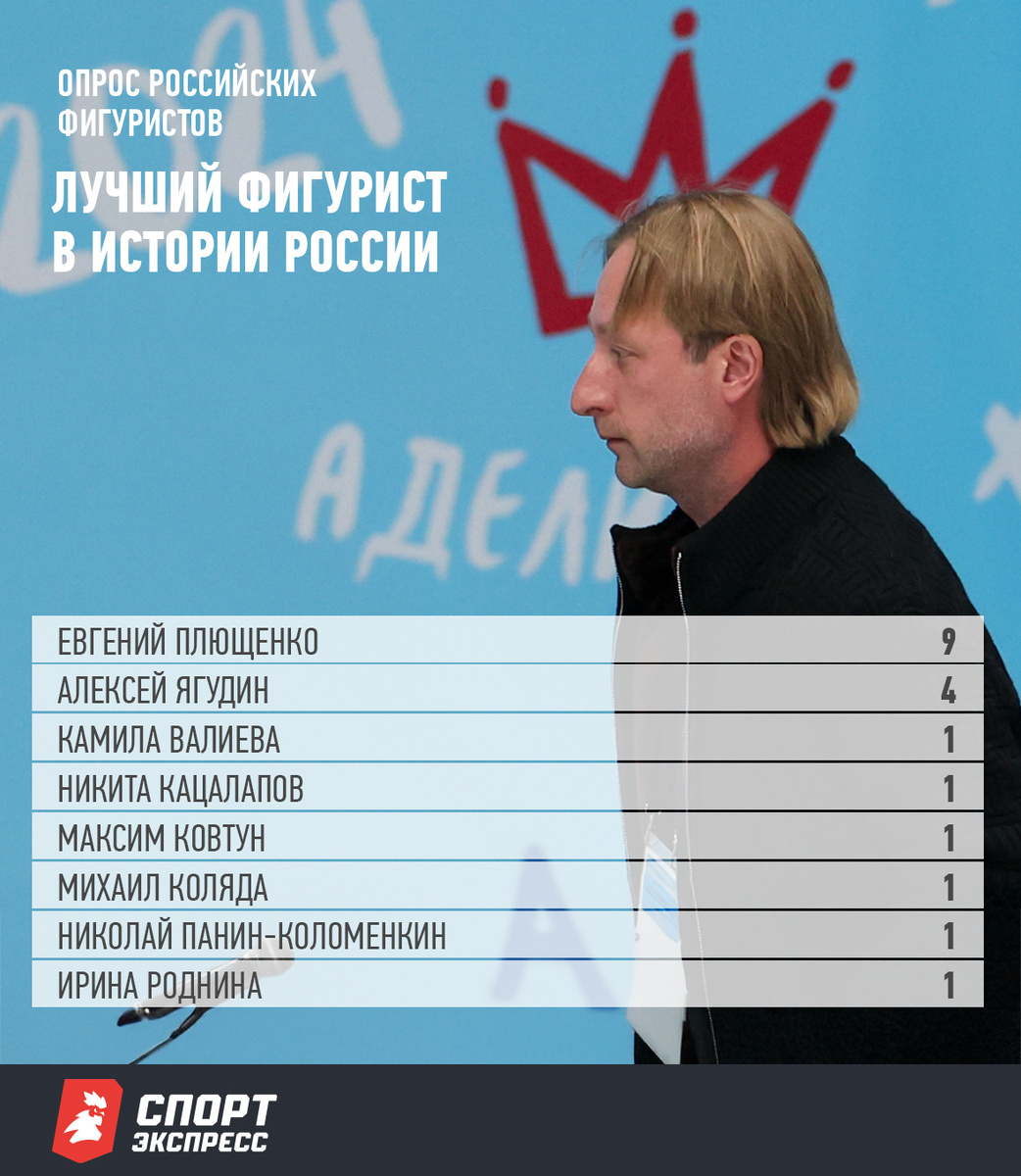 "Спорт-экспресс" провёл хороший опрос среди фигуристов. Одним из вопросов был "Кто лучший фигурист за всё время?". Результат вы видите на КДПВ: Всё, что хочется здесь сказать - Евгению Викторовичу стоит чаще улыбаться у бортика. Когда он весел (а я имел честь видеть это на юбилее Профессора, где Е.В. прыгал тройной!), это совсем другое выражение лица - радостное и победное! И у тренируемых спортсменов будет совсем другое настроение. Ну а результаты опроса говорят сами за себя: столько лет держать флаг - это и талант, и работа. Заслуженно.