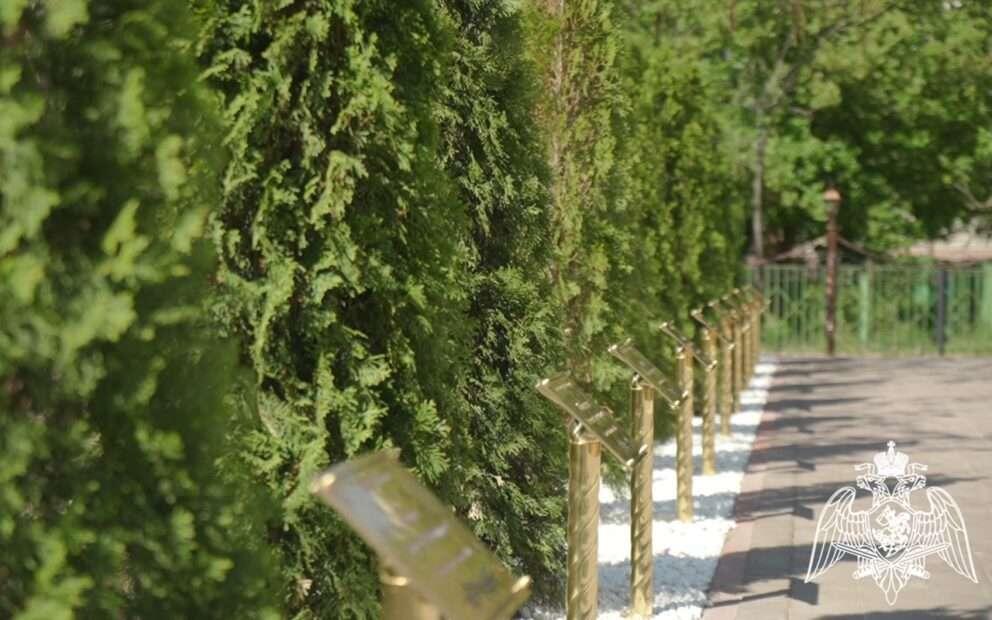 В Воронеже возле школы № 98 на улице 9 Января, 98 появилось особое место памяти — Аллея Славы. Об этом сообщили в пресс-службе региональной Росгвардии Инициатива создания Аллеи Славы и памятника принадлежит полковнику полиции в отставке 20 лет возглавляющему ОМОН Александру Воронцову. На аллее высадили пятнадцать туй, возле каждой установлена памятная табличка с именем. Здесь увековечены Герои России, кавалеры орденов Мужества, медалей «За отвагу» и Жукова. Погибшие герои — бойцы ОМОН, СОБР, военнослужащие Министерства обороны и военные журналисты — они награждены орденами и медалями посмертно.