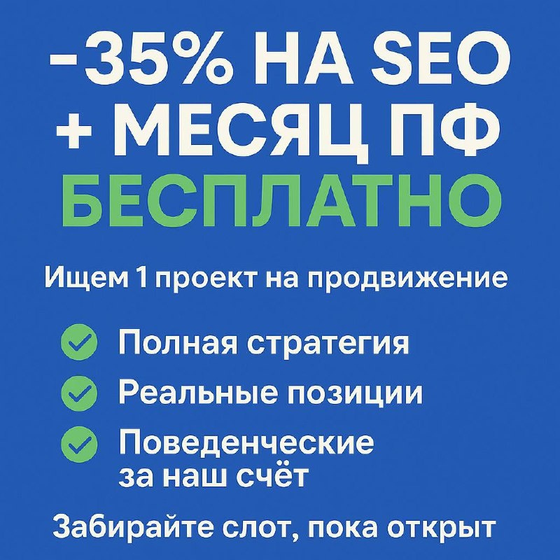 🚨 Срочно берем 1 проект на SEO со скидкой -35% и месяцем ПФ в подарок