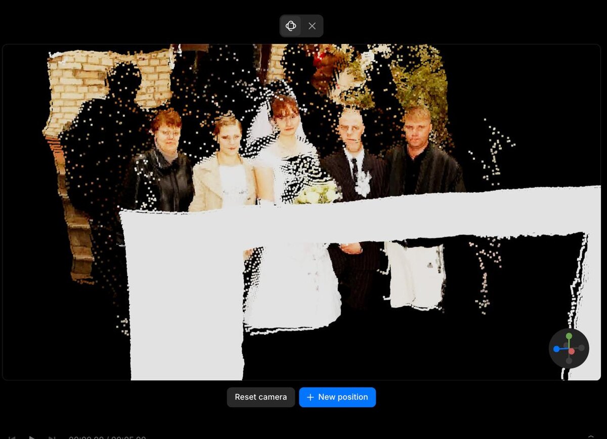 Интересный подход в image-to-video Morphic пошли путем создания облака точек, таким образом, кроме image-to-video тут еще есть дополнительный шаг 2D-to-3D, для улучшения контроля генерации. Вы загружаете в него статичное изображение, он создает облако точек, вы выбираете ракурсы камеры. Тестирую на Свидетеле, как видите. Облако точек не такое сладкое, как в промо-черрипиках, но что-то в итоге строит, глубину видит. #videoGenerative@TochkiNadAI