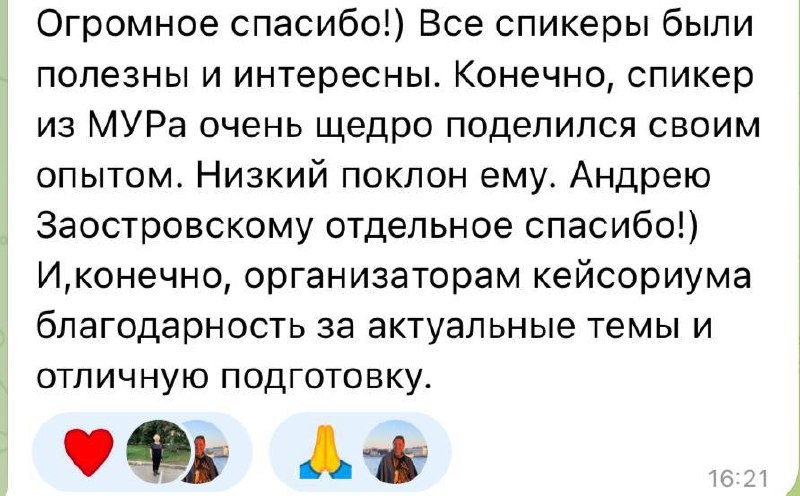 23 июля прошел КЕЙСОРИУМ ГРМ! Профессионалы рынка недвижимости, юристы и бизнес-эксперты собрались в Москве, чтобы получить концентрат полезной информации, разобраться в новых угрозах и найти работающие инструменты для уверенной работы. 🕘 В зале почти не было пустых мест уже к 10:00 - участники знали, что впереди насыщенная и мощная программа. День был по-настоящему насыщенным: крутые спикеры, живой диалог, разборы, инсайты и даже секретный гость! 🎓 Многие участники прошли аттестацию и получили удостоверения. Особенно приятно читать ваши отзывы – вот лишь часть того, что вы написали (см. фото) Спасибо всем, кто был с нами, и спасибо за вашу обратную связь — она даёт энергию двигаться дальше и делать ещё лучше. 🔔 Следите за обновлениями — уже готовим следующий КЕЙСОРИУМ и скоро расскажем, какие темы вас ждут!