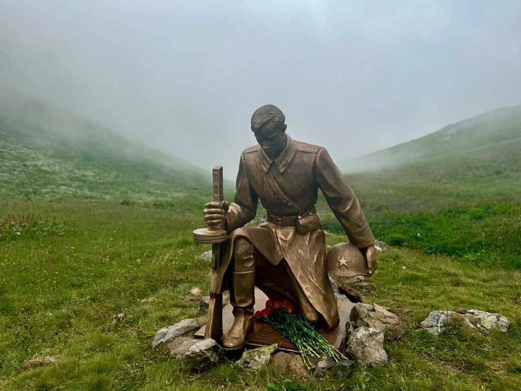 Памятник воинам, отдавшим жизни за свободу и независимость Родины в годы Великой Отечественной войны открыли на перевале Аишха. Мемориал – фигуру солдата, преклонившего колено – установили на высоте почти 2,5 тысячи метров над уровнем моря. Краснополянские перевалы имели важное стратегическое значение. Встретив здесь ожесточенное сопротивление, немецкие войска не смогли прорваться к побережью. Это стало одним из решающих факторов, заставивших врага отказаться от наступления на Кавказ. Перевал Аишха стал символом мужества и стойкости советских солдат. Мемориал создан по инициативе министра ГО и ЧС Краснодарского края Сергея Штрикова. Памятник будет находится под опекой службы «Кубань-СПАС» Фото: «Кубань-СПАС»