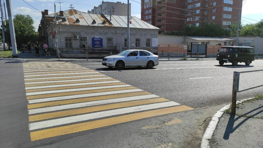 В Оренбурге нанесение разметки, устройство искусственных дорожных неровностей, установку знаков начали в мае 2025 года. Тогда термопластиком обновили дорожную разметку на центральных улицах и магистралях областного центра: проспекте Победы, улицах Терешковой, Постникова, М. Горького, Пушкинской, Цвиллинга и других. На днях новая термопластиковая разметка – продольная и для обозначения пешеходных переходов – появилась на ул. Рыбаковской. С 1 августа и до 1 сентября разметка появится на оживленных участках дорог, подходах к пешеходным переходам, образовательным учреждениям на улицах Аксакова, Джангильдина, Ткачева, Одесская, Челюскинцев, Чичерина и другие. В городских селах на дорогах, прилегающих к детским садам и школам, разметка появится также до 1 сентября. Фото: тк Оренбург. Официально 12+