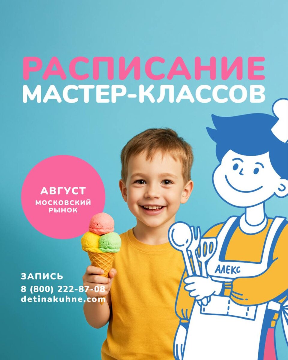 Последний месяц лета с новыми мастер-классами в «Дети на кухне» 🧑🍳 Вас ожидают совместные мастер-классы для детей и их родителей и много веселья! Мы приготовим вкусные подарки для учителей: ассорти конфет, набор пряников, дунайский шоколад и ягодные капкейки 🍰 🧑🍳Каждую неделю у нас проходит городской кулинарный лагерь, о котором можно подробнее узнать и записаться ТУТ Посмотреть полное расписание и записаться на мастер-класс можно ЗДЕСЬ 💕