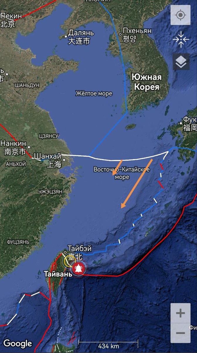 В Восточно-Китайском море на уровне М6+ трассировалась граница плиты Янцзы